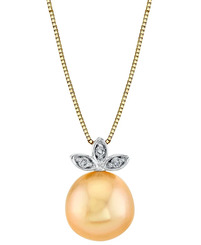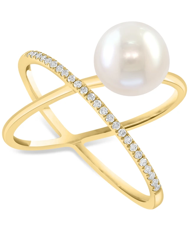 Cultured Golden South Sea Pearl (9mm) & Diamond (1/10 ct. t.w.) Ring in 10k Gold