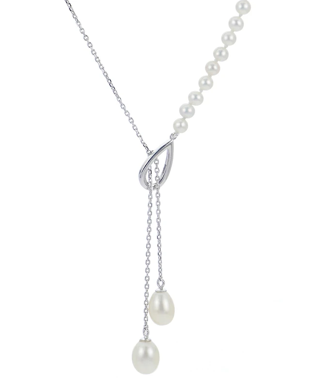 Bling Jewelry Elegant Forever Knot Twist Infinity Teardrop Cultured Freshwater White Pearl Necklace Pendant Cz Pave Sterling Silver 16-18 Inch