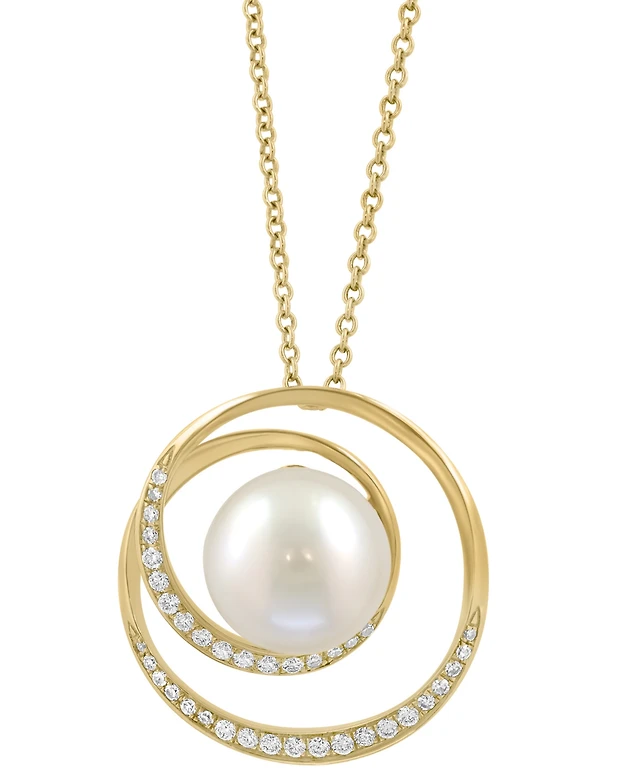 Cultured Freshwater Pearl (8 & 9mm) and Diamond Accent Pendant Necklace Earrings Set Sterling Silver or 14k Gold Over