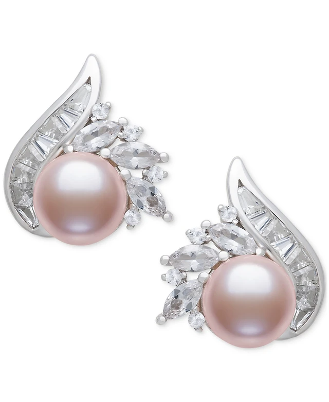 Arabella Cultured Freshwater Pearl (5mm & 10 x 8mm) & Cubic Zirconia Lariat Necklace in Sterling Silver, Created for Macy's