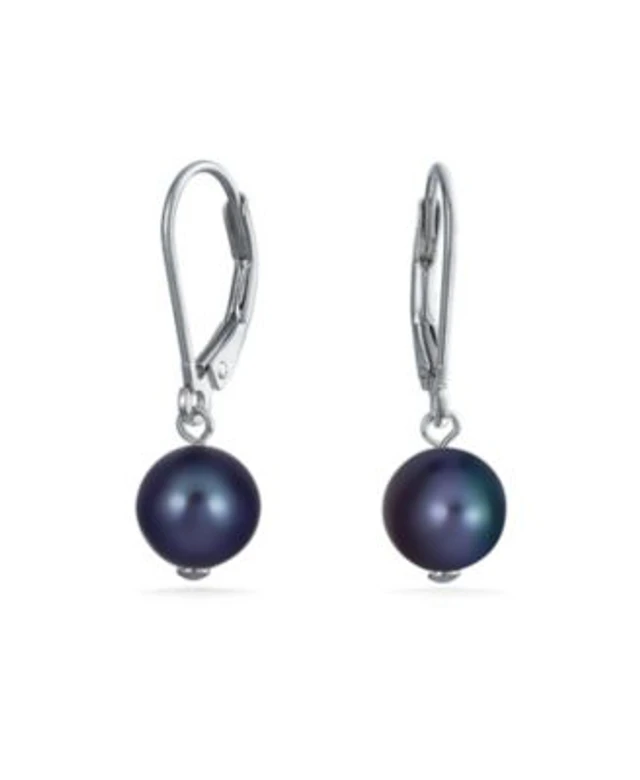 Belle de Mer Peacock Black Cultured Freshwater Pearl (10mm) & Cubic Zirconia Halo Drop Earrings Sterling Silver (Also White