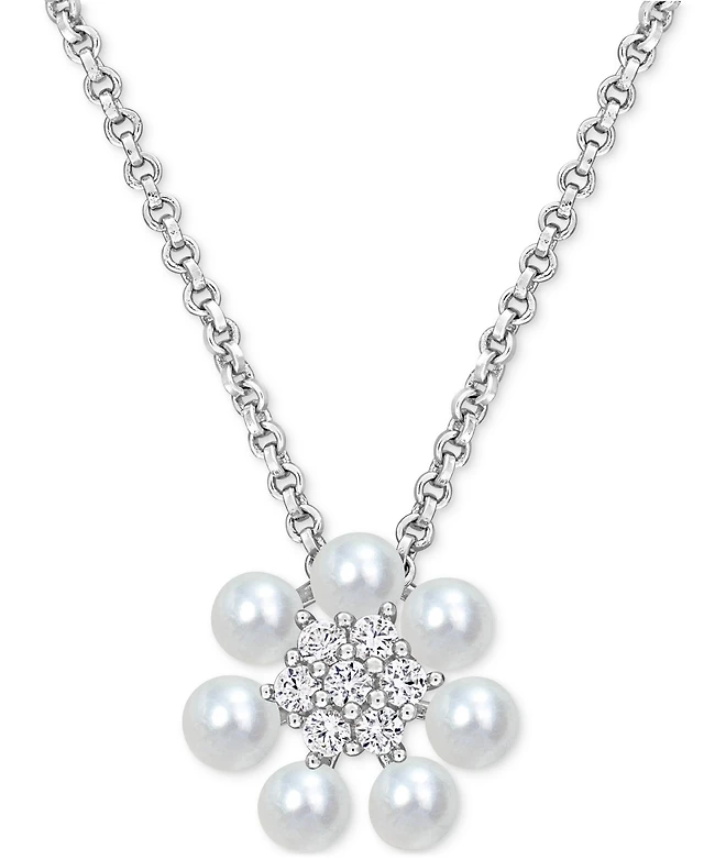 Cultured Freshwater Pearl (8mm) & Lab Grown White Sapphire (3/4 ct. t.w.) Flower Pendant Necklace in 14k Gold-Plated Sterling Silver, 16" + 2" extende