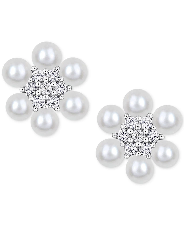 Cultured Freshwater Pearl (4-6mm) & Lab-Created White Sapphire (1/10 ct. t.w.) Flower Drop Earrings in Sterling Silver
