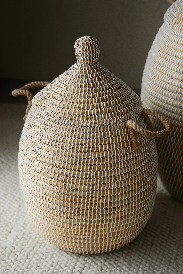 Hand-Woven Hyacinth Storage Baskets with Handles and Lids (Set of 3)