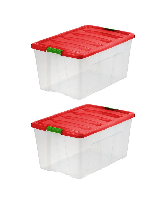 Iris Usa 4Pack 19qt Christmas Plastic Storage Bin with Lid and Secure Latching Buckles, Clear/Red