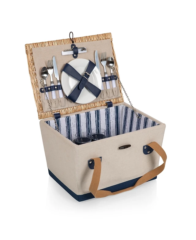 Picnic Time Country Navy & White Striped Picnic Basket