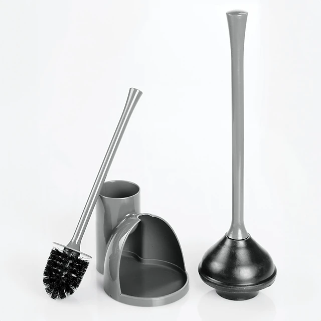 iDesign Compact Toilet Brush and Plunger Set - Gray