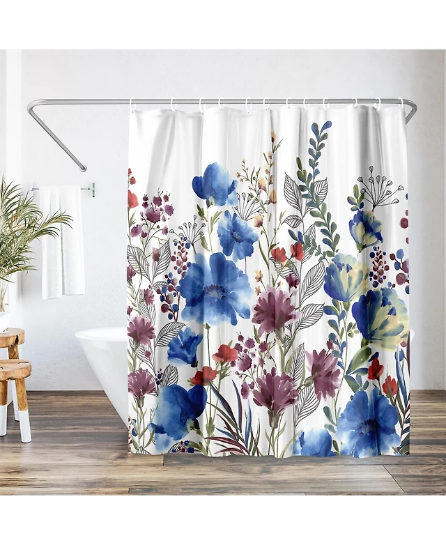 71x74 Blue Floral Shower Curtain - 100% Polyester - Water-Resistant Bath Curtain