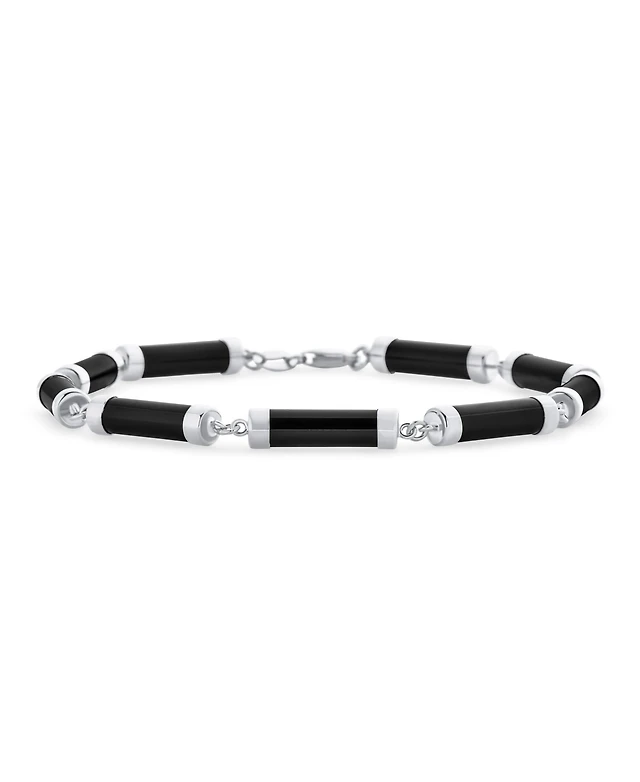 Bling Jewelry Asian Style Black Natural Onyx Strand Tube Bar Link Bracelet Sterling Silver 7.5 Inch