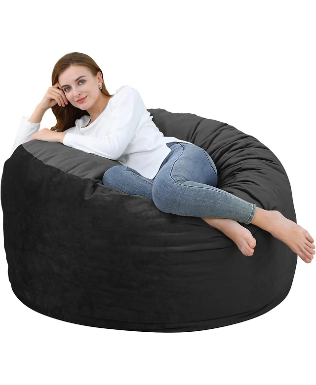 5ft Faux Fur Bean Bag Chair for Adults and Kids, Washable Cover, Memory Foam Lounger Bedroom or Living-The Pop Home