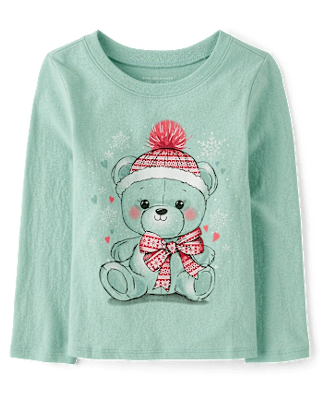 Baby And Toddler Girls Christmas Bear Graphic Tee