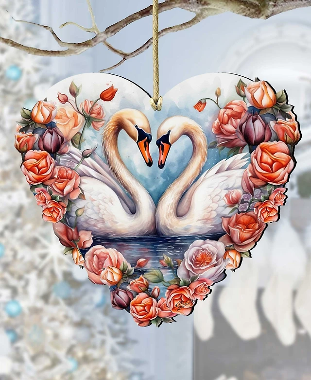 Designocracy Holiday Wooden Ornaments Swans Love Home Decor G. DeBrekht