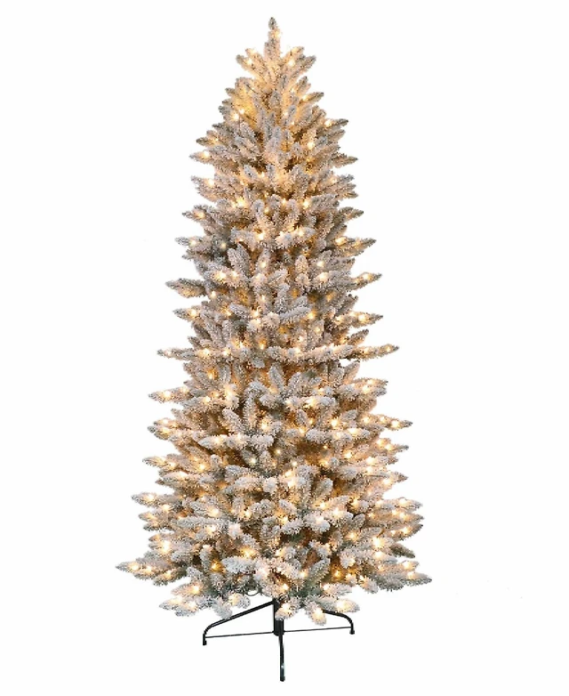Flocked Fraser Fir Artificial Christmas Tree with Lights and Bendable Branches, 96"