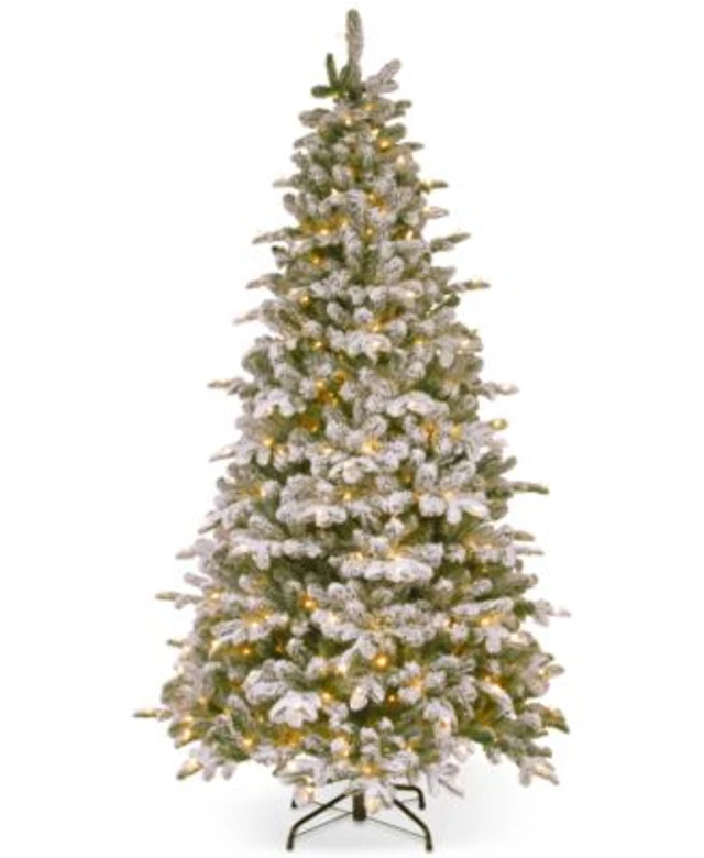 Slim Flocked Montreal Fir Artificial Christmas Tree with 400 Warm Led Lights and 1348 Bendable Branches, 8'
