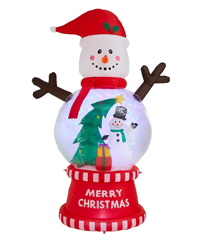 Glitzhome 6" Lighted Inflatable Skiing Santa, Snowman and Dog Decor