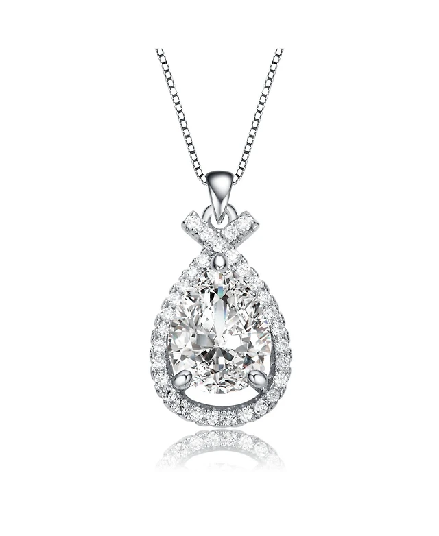 White Gold Plated with Cubic Zirconia Pear Rain Droplet Infinity Love Knot Pendant Necklace