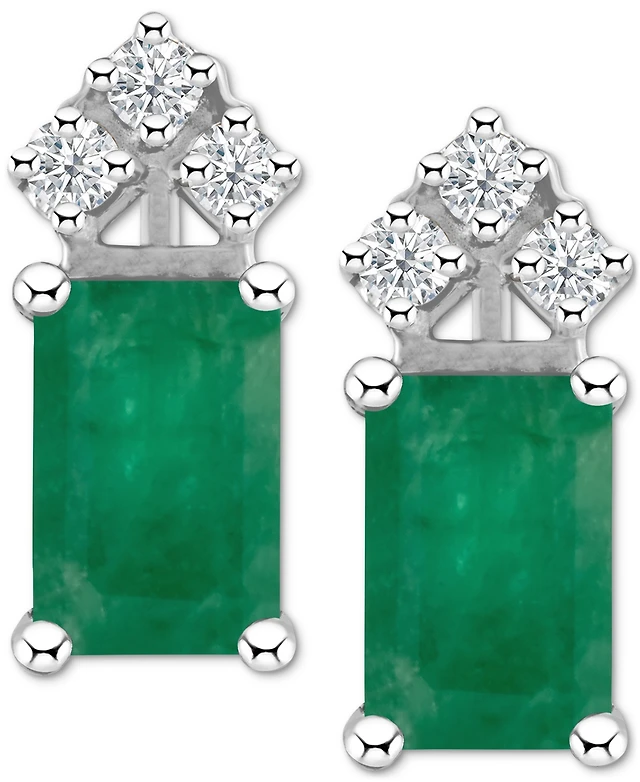 Ruby (1-3/8 ct. t.w.) & Diamond (1/8 Crown Stud Earrings 14k White Gold (Also Emerald Tanzanite)