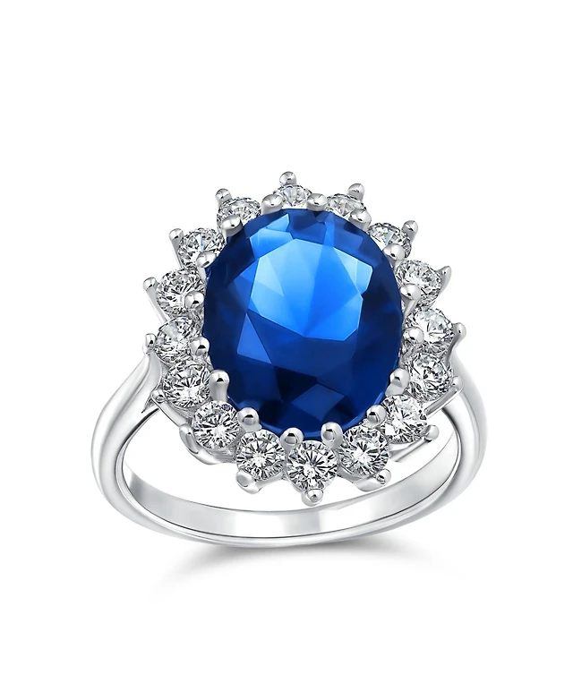 Bling Jewelry 4CT Royal Blue Cubic Zirconia Oval Cocktail Statement Ring Crown Halo Sterling Silver