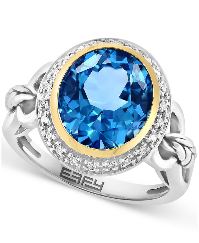 Effy Blue Topaz (5-7/8 ct. t.w.) & Diamond (1/10 ct. t.w.) in Sterling Silver & 18k Gold-Plate