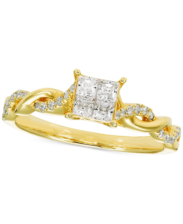 Diamond Princess Quad Cluster Twist Shank Engagement Ring (1/2 ct. t.w.) in 14k Gold