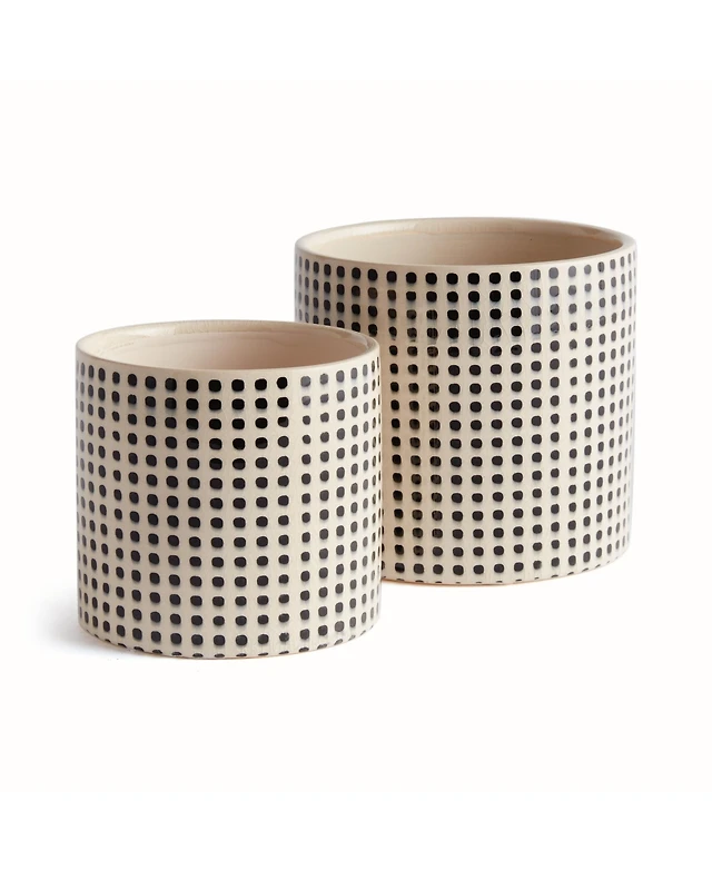 LuxenHome Set of 2 Black Dimpled Metal Cachepot Planters with Black Metal Legs