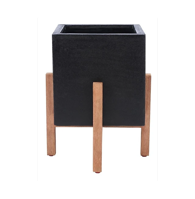 Bloem Finley Indoor/Outdoor Plastic Square Planter, Black 20 inches