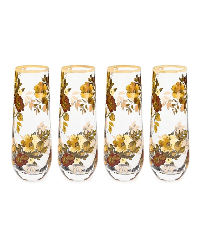 MacKenzie-Childs Wild Rose Stemless Flute Glasses, Set of 4