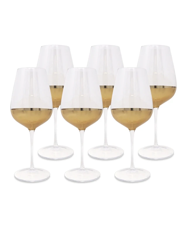 Lorren Home Trends Amber Color White Wine Goblet with Gold-Tone Rings, Set of 4