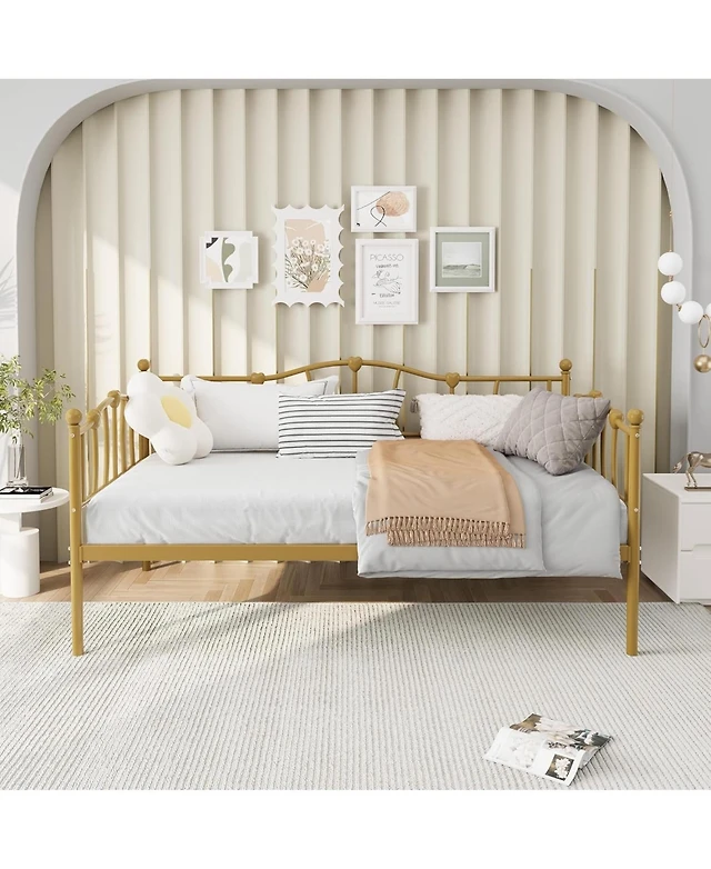 gaomon Twin Daybed Metal Sofa Bed Frame with Steel Slat Support Living Room Bedroom Guest Room Pink