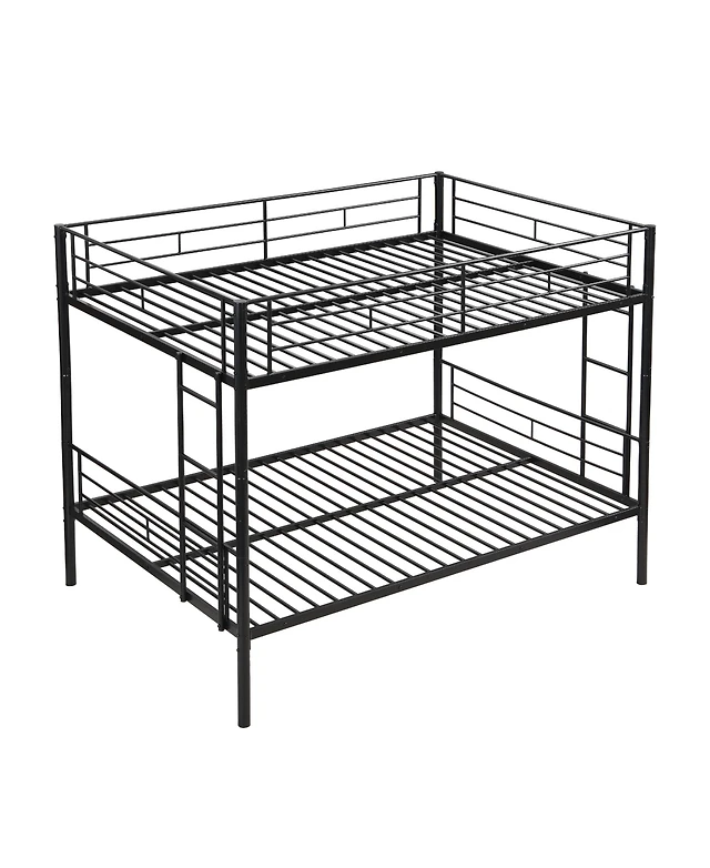 Boyel Living Full Over Full Metal Bunk Bed Black, No Box Spring Needed, Easy Assemble with Safe Stairs