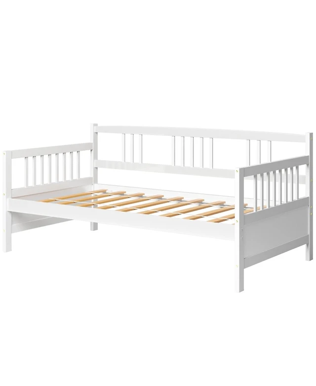 Sugift Twin Size Wooden Slats Daybed Bed with Rails-White