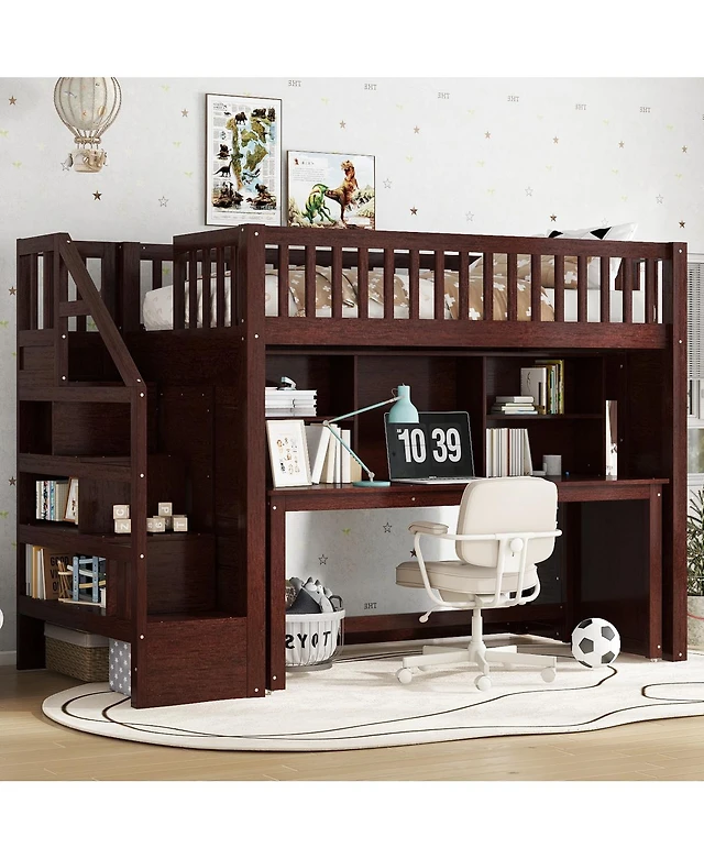 Streamdale Furniture Full Size Loft Bed with Desk, Storage Stairs & Shelves