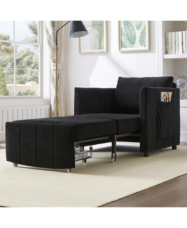 Streamdale 3-in-1 Tufted Futon Sofa Bed with Side Pockets and Cup Holders