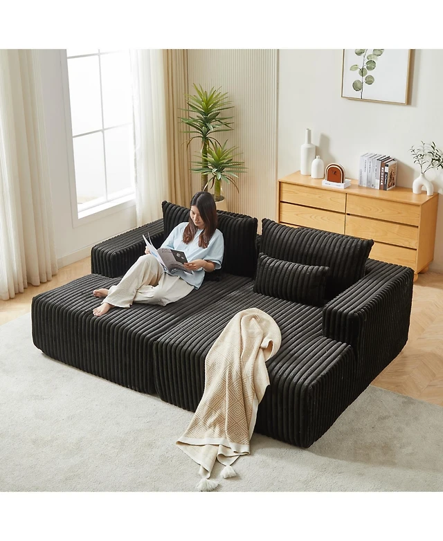 Maison Boucle 64.5 Inch 3-in-1 Corduroy Pull-Out Sleeper Sofa, Adjustable Loveseat Bed with Storage Pockets & 2 Pillows-Maison