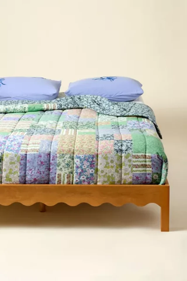 gaomon Full Upholstered Velvet Platform Bed with Two Tone Scalloped Headboard and Solid Wood Slats