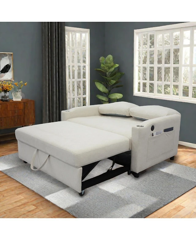 Maison Boucle 65" Pull-Out Sofa Bed with Desk & Usb, Velvet Convertible Sleeper Adjustable Backrest Storage for Small Apartments or Offices-Mai