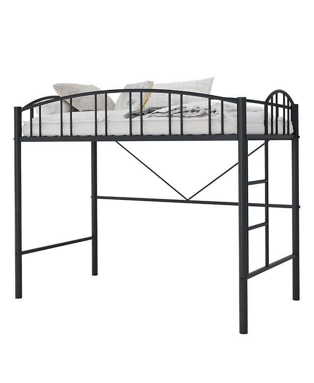 Streamdale Furniture L-Shaped Metal Bunk Bed with Twin Loft, Desk, Storage, and Slide (Black)
