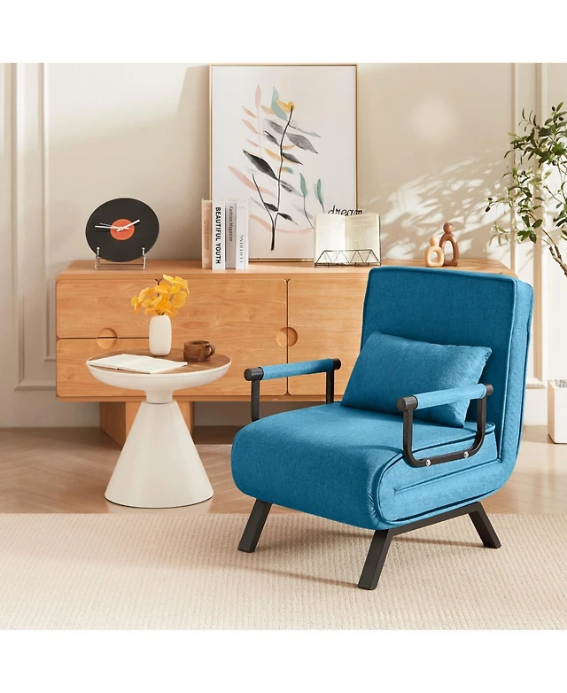 Maison Boucle 4-in-1 Single Velvet Pull-Out Sleeper Chair Bed with Adjustable Backrest, Side Pocket & Pillow for Small Spaces-Maison