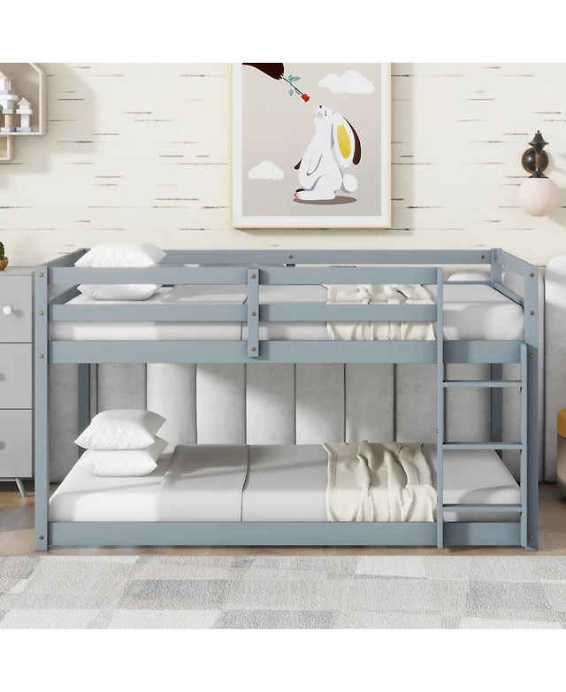 Samuel Kids Bunk Bed With Convertible, Solid Wood Slatted Frame And Easy-To-Climb Ladder No Box Spring Required