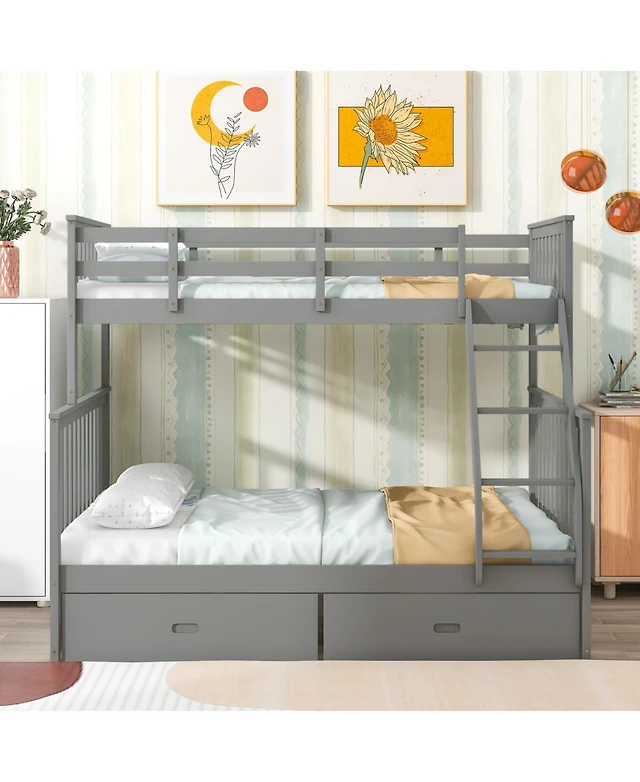 Streamdale Twin/Full Bunk Bed, Trundle, Safety Rails, Gray