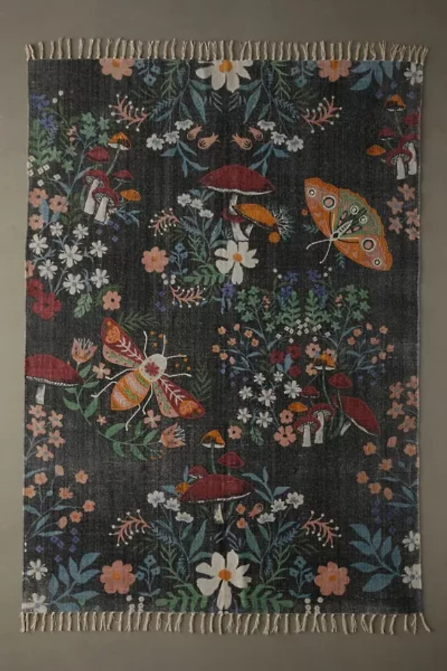 Insect Floral Embroidered Brushed Rug