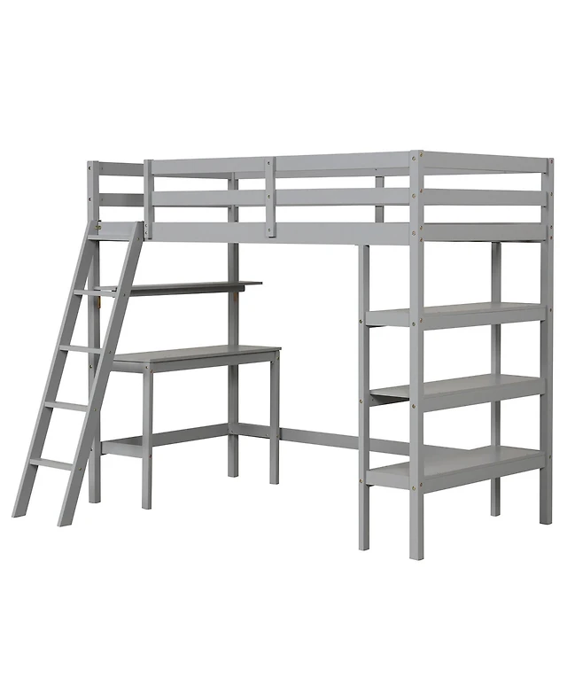 Gaomon Twin Loft Bed with L-Shaped Desk & Storage Shelf, Heavy Duty Metal Frame for Adults,Space Saving Design,Vintage Finish