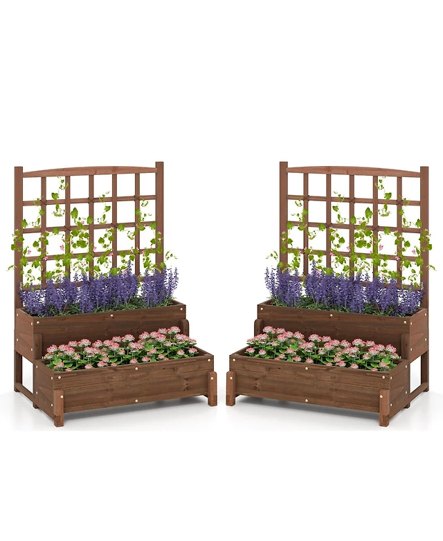 Gymax 2PCS Raised Garden Bed w/Trellis Drainage Holes Legs Twisting Rope for Backyard