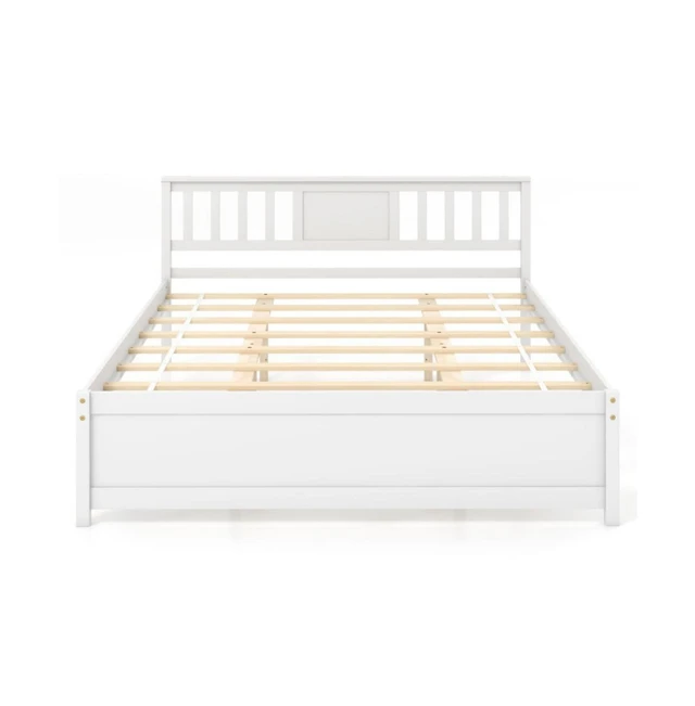 Streamdale Furniture Queen Wood Platform Bed with Rattan Headboard/Footboard