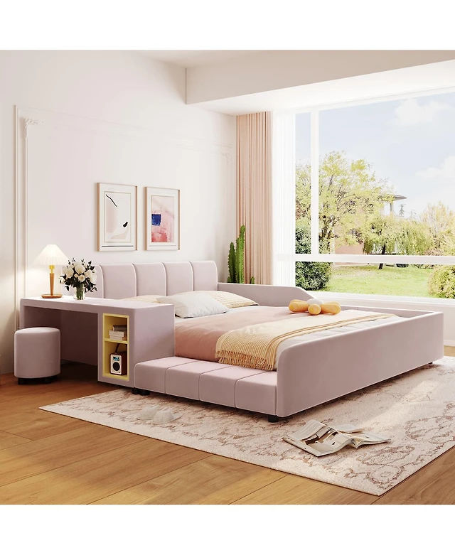 Streamdale Furniture Car-Shape Floor Bed with Storage, Window & Desk, Twin Size
