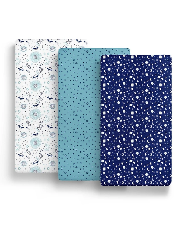 The Peanutshell Pack n Play, Mini Crib, Portable Crib or Fitted Playard Sheets for Baby Girl, Mod Floral, Space, 3 Pack Set