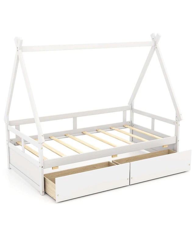 Gymax Twin Size Wooden Bed Frame with 2 Storage Drawers & Under-bed Storage Espresso