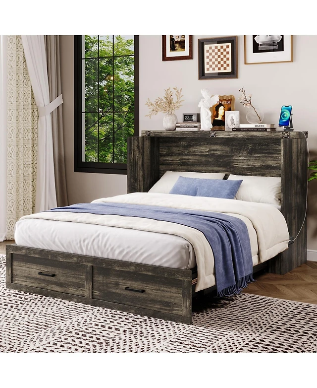 gaomon Upholstered Bed Frame With Charging Station Headboard & 4 Storage Drawers, Platform Bed Frame Mattress Foundation With Wooden Slats Support
