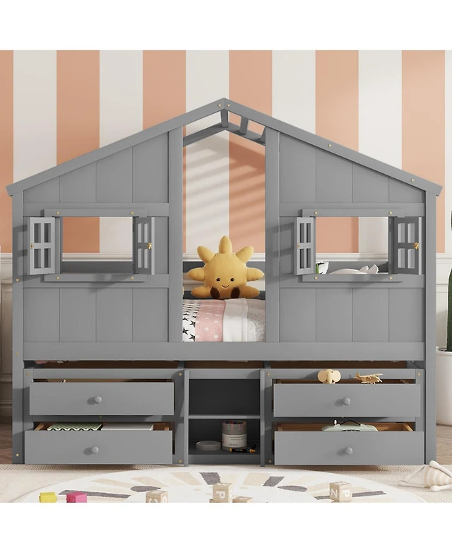 Streamdale Furniture Full House Beds with Storage Drawers and Window, Solid Wood Platform Bed Frame
