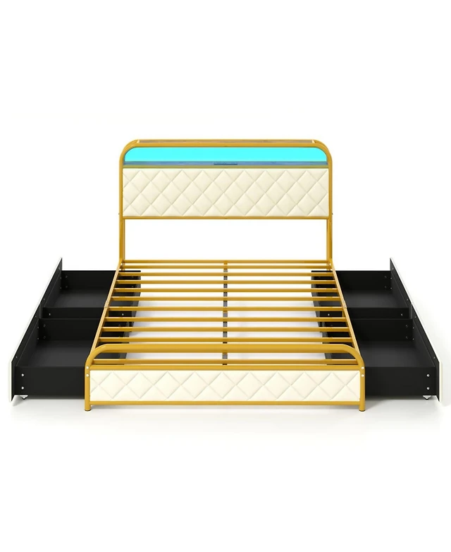 gaomon Twin Led Upholstered Bed Frame with Storage Drawer